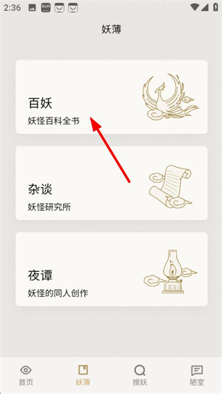 2、在妖簿页面,点击百妖选项,进入百妖列表页面。