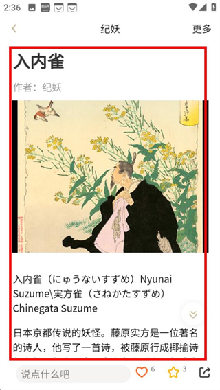 4、在妖怪详情页面,即可查看入内雀的相关介绍信息。