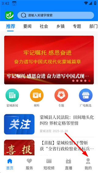 1、在今日蒙城首页,点击右下角我的选项,进入个人页面。