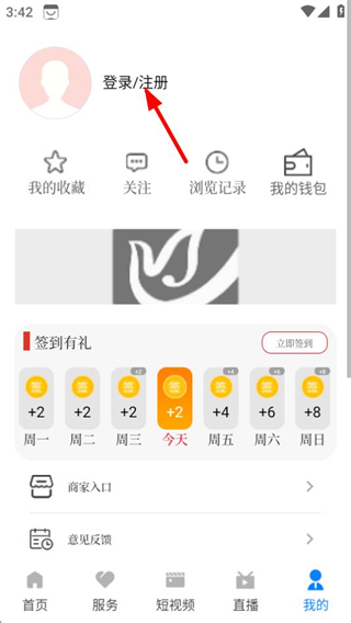2、在个人页面,点击登录注册区域,进入登录页面。