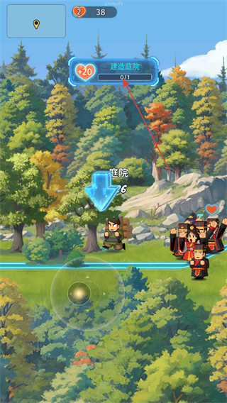4、根据新任务提示建造建筑如庭院,在指定位置建造建筑,推进游戏进程,同时吸引更多臣民,提升国力。