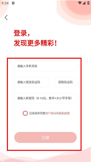 4、在注册页面,填写信息,勾选协议后点击注册,完成账号注册。