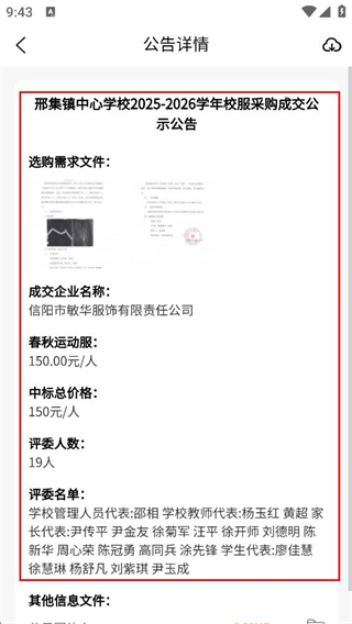 3、在公告详情页面,查看采购公告的选购需求文件、成交企业、价格等详细信息。