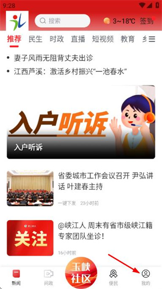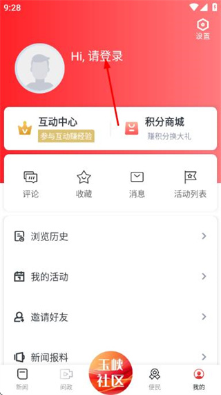 1、在新闻页面点击底部我的,进入个人中心页面。