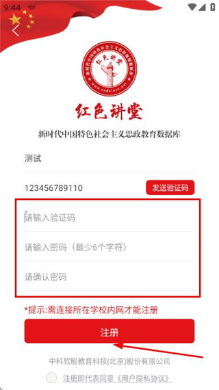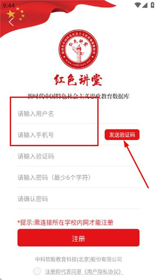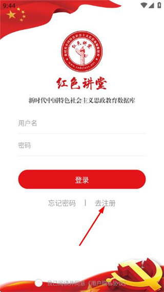 1、在红色讲堂登录页面点击去注册,进入账号注册页面。