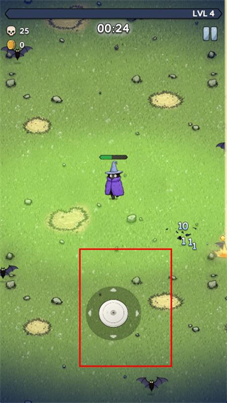 3、通过底部摇杆,操控法师角色移动,躲避怪物攻击并输出。