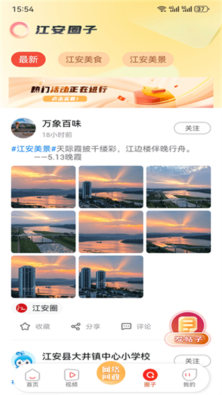 搭建江安专属互动圈子,支持美食美景打卡、生活点滴分享,用户可一键报料身边事,上传图文视频参与讨论,促进邻里交流,同时绑定积分体系,增强用户参与感。