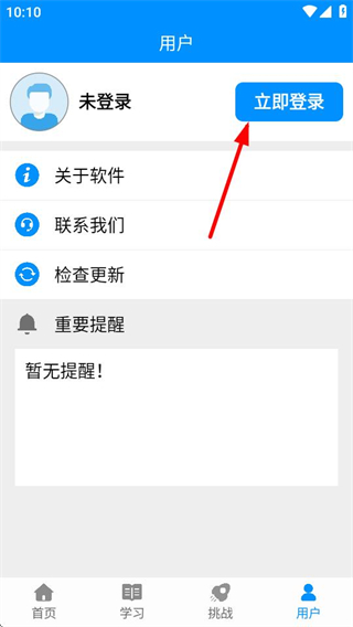 2、在用户页面,点击立即登录按钮,进入用户登录页面。