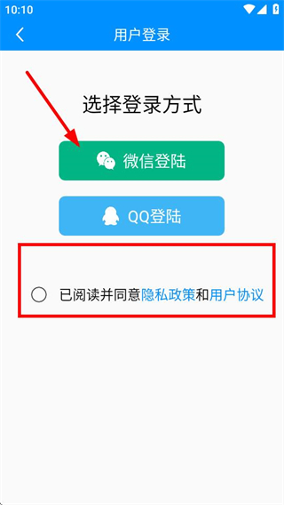 3、在用户登录页面,勾选协议后选择微信登陆,即可登录账号。