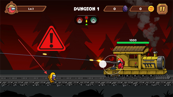 1、操控火车武器瞄准敌人射击,注意躲避警告标识下的敌人,积累战斗经验。