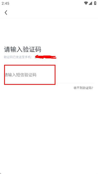 3、在验证码输入页面填写短信验证码,完成账号登录操作。
