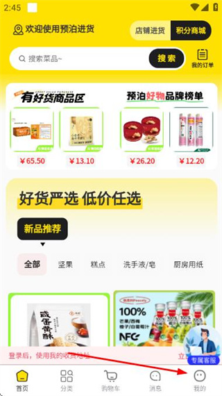 1、在预泊进货首页点击底部我的,进入欢迎登录页面。