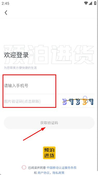 2、在登录页面填写手机号和图片验证码,勾选相关协议后点击获取验证码。