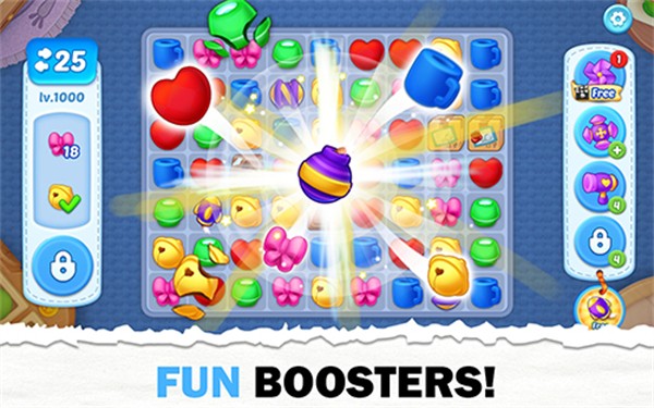 以休闲消除为核心玩法,关卡设计简单有趣,搭配道具助力可快速通关,消除过程轻松解压,为房屋设计积累更多创意与资源。