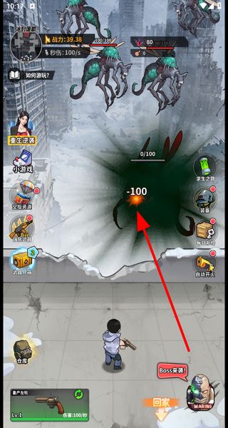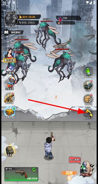 2、玩家可以点击自动挂机攻击,开启自动开火功能,自动攻击怪物,轻松获取资源。