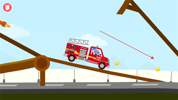 1、驾驶消防车在拱形赛道行驶,收集星星,注意保持车辆平衡。