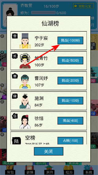 2、在仙湖榜界面可挑战其他修仙者,挑战时需关注对方的战力要求,成功挑战后可提升自身排名和修为。