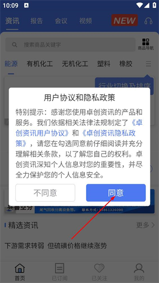 1、在隐私政策弹窗中,点击同意,进入主界面。