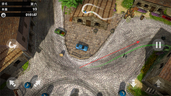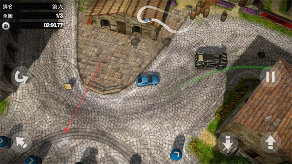 2、在石板路等复杂地形的弯道处,控制车速和方向,顺利过弯。