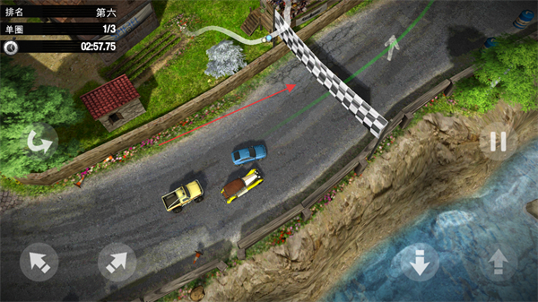 1、利用方向键操控赛车,在赛道上行驶,超越其他车辆,提升排名。