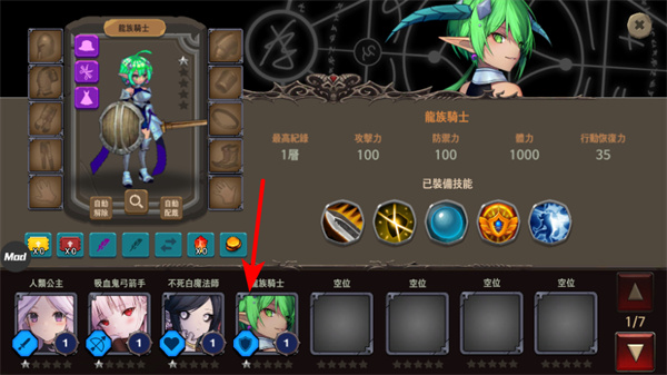 1、游戏中点击功能按钮如Menu按钮进入界面,进入后可查看和调整角色阵容,为冒险做好人员配置。