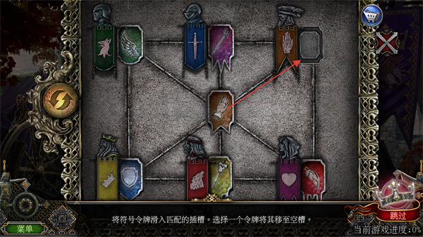 1、观察符号令牌和插槽的匹配关系,选择合适的令牌移至空槽。