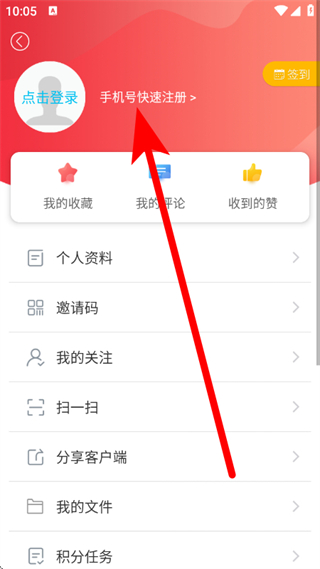 2、在个人页面,点击手机号快速注册,进入注册页面。