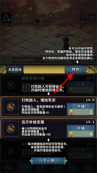 3、遇到转世功能时,可点击了解其规则和效果,转世后英雄将获得新的成长机会,提升队伍整体战力。