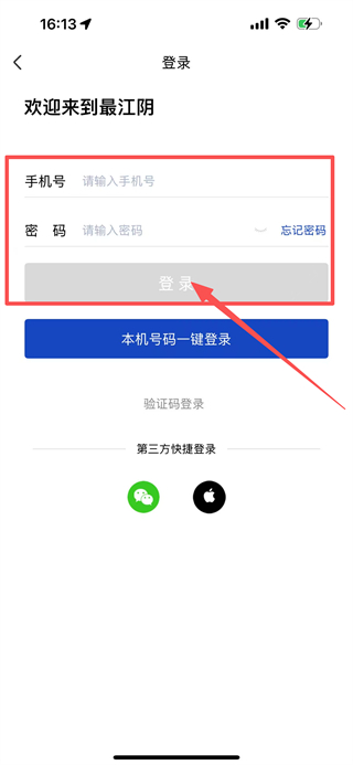 4、在密码登录界面,输入手机号和密码后点击登录,完成登录操作。