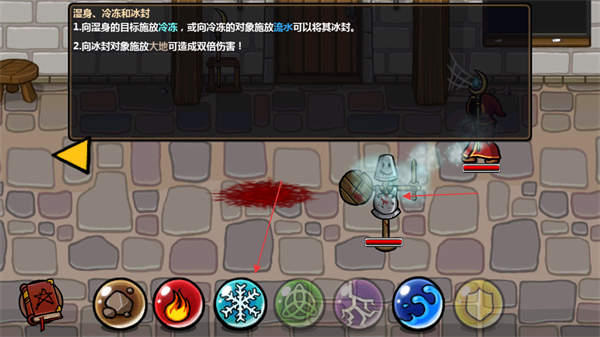 2、点击下方冰元素,长按对目标释放,将目标冻住。
