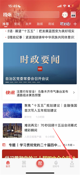 1、在团炬首页,点击底部的我的选项,进入个人主页。