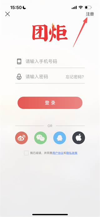 3、在登录注册页面,点击右上角的注册选项,进入注册页面。