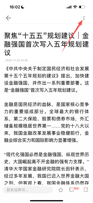 2、进入新闻详情页后,点击页面右上角的三点图标,可打开操作菜单。