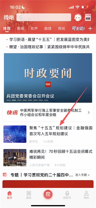 1、在团炬的首页,找到感兴趣的新闻条目,点击即可进入详情页。