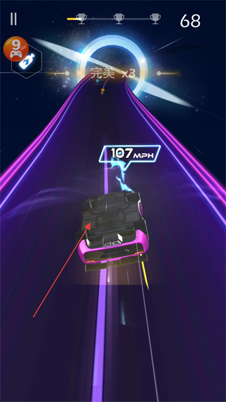 采用移动点击的核心操作,通过滑动屏幕控制赛车转向、躲避障碍,操作逻辑简单直观,无需复杂按键组合,新手也能快速跟上音乐节奏完成竞速。