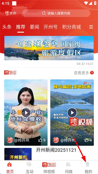 1、在帅开州的首页,点击底部导航栏的我的选项,可进入个人中心页面。