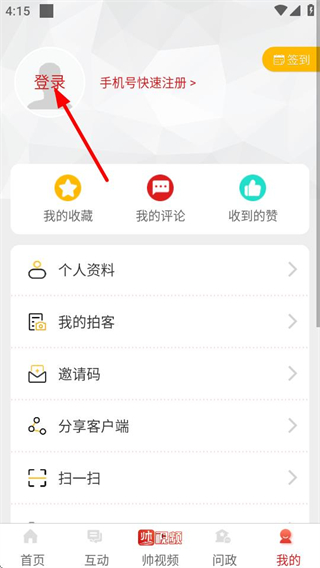 2、进入我的页面后,点击页面上方的登录,可进入登录界面。