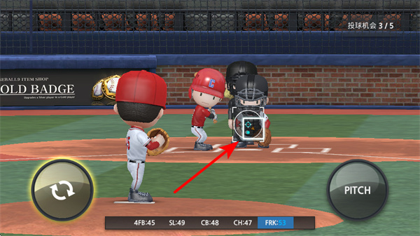 4、投手投球后,将击球的指针移动到投球目标的地点,准确的移动可以提升击球成功率。