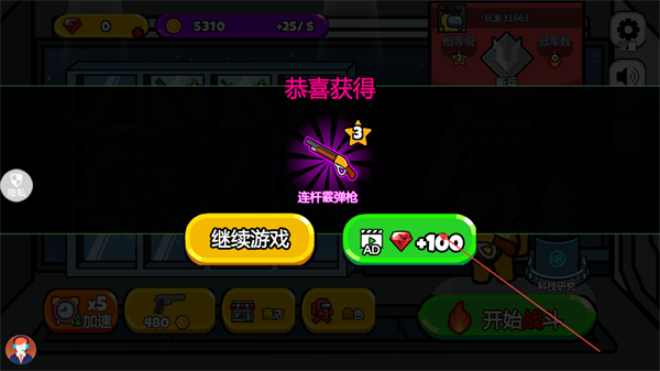 3、成功获得新的武器后,可以点击观看视频获取额外的钻石奖励。