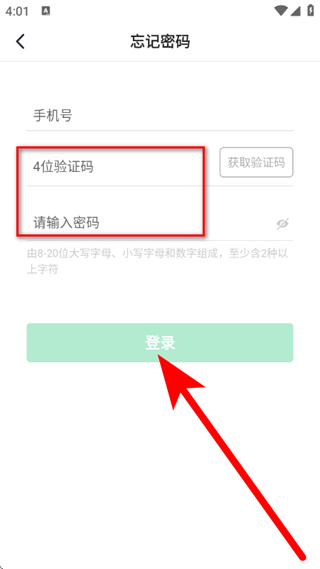 4、输入验证码、新密码后,点击登录,完成密码重置。