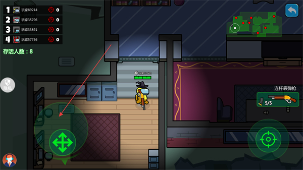 2、通过左下角方向键控制角色在地图中移动,寻找其他玩家的位置。