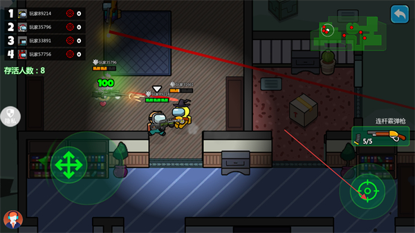 3、点击右下角的按钮,发射子弹攻击其他玩家,注意自身的血量。