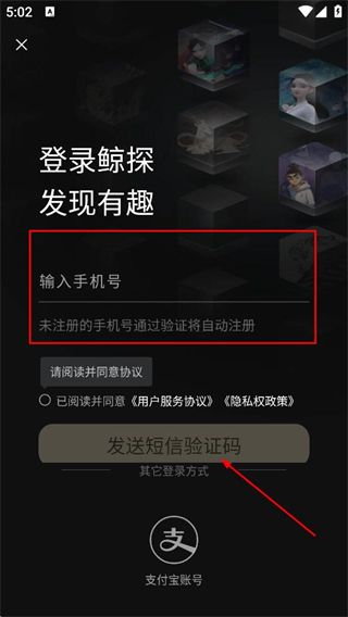4、在手机号登录界面,输入手机号,点击发送短信验证码。