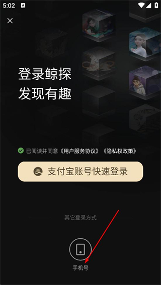 3、在登录界面,点击手机号,选择手机号登录方式。