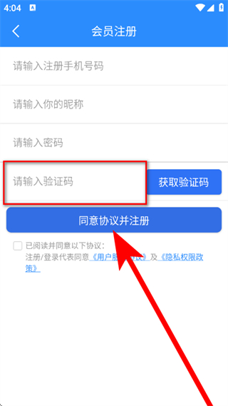 5、输入验证码,勾选已阅读并同意后,点击同意协议并注册,完成操作。