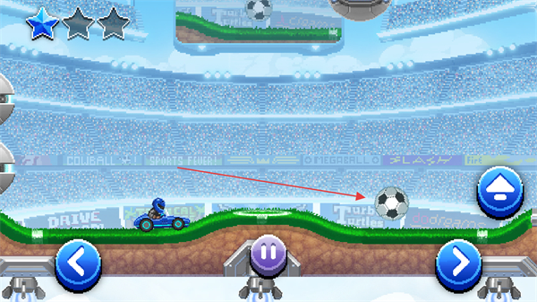 2、通过左右方向键操控赛车移动,靠近足球,利用赛车撞击足球使其移动。