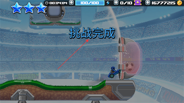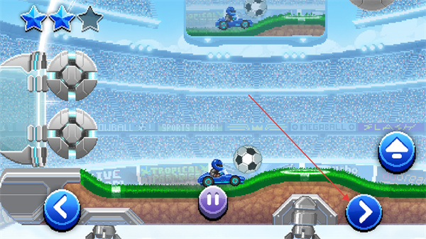 4、将足球成功送入球门,完成射门挑战,即可达成三星成就,完成关卡。