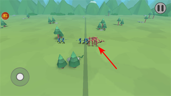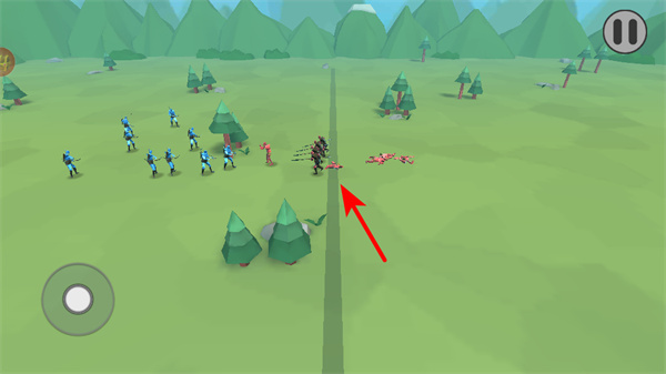 2、战斗中指挥己方士兵与敌方士兵交战,通过兵力对抗击败敌人,推进关卡进程。