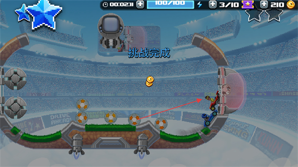 3、将足球成功送入球门,完成射门挑战,可获得金币和星级评价。
