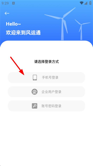 2、进入登录选择页面后,点击手机号登录选项,可进入手机号登录界面。